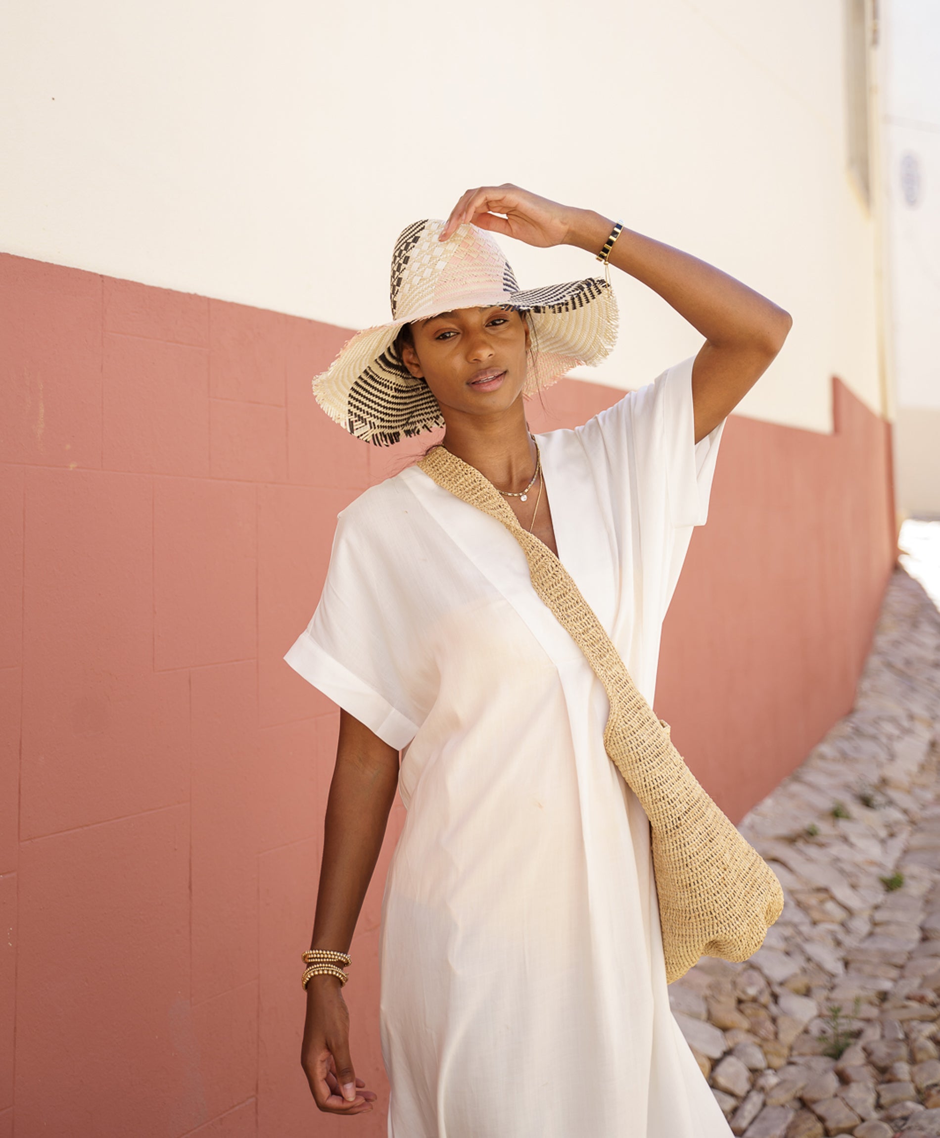 Our Jane Hat is handcrafted from our papier recycled material by specialist artisans in Italy. The mix of brown, red and blue for this hat makes it your perfect pop accessory for the summer. Finished with a frayed edge for a more casual look. This piece rolls and folds easily making it perfect for travelling.